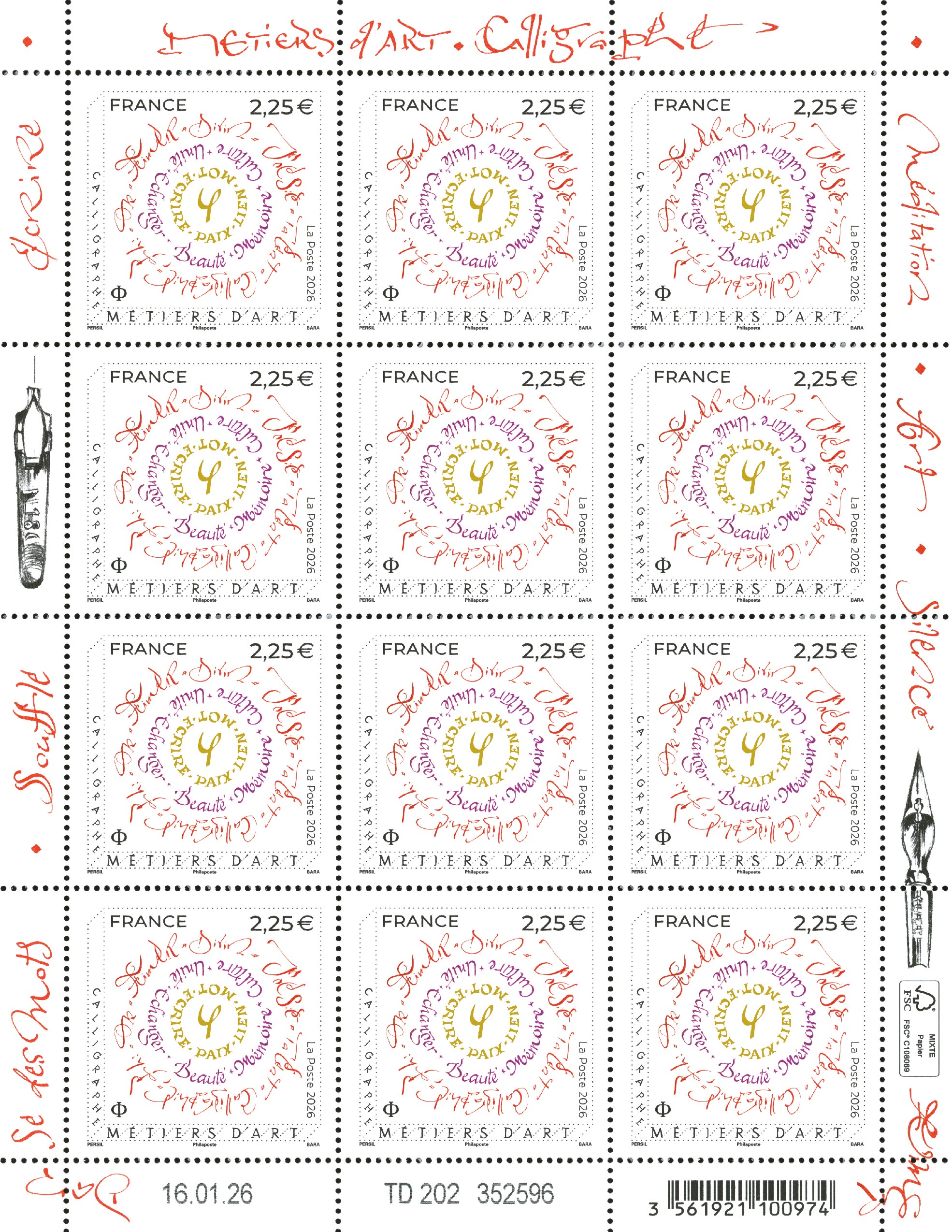 Souvenir philatélique : métiers d'art - Calligraphe. |